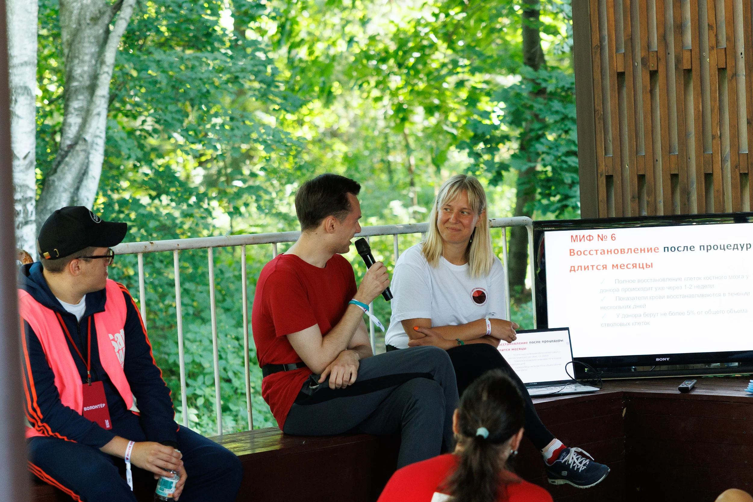 Дистанцию 5 км можно было преодолеть в любом темпе, в том числе и шагом. Перед пробежкой участники сделали разминку и прошли инструктаж. По окончании забега ведущий специалист отдела рекрутинга доноров НМИЦ гематологии Минздрава России Алена Фирсова, которая тоже приняла участие в забеге, рассказала участникам о донорстве костного мозга. На месте было организовано типирование для вступления в регистр доноров костного мозга.